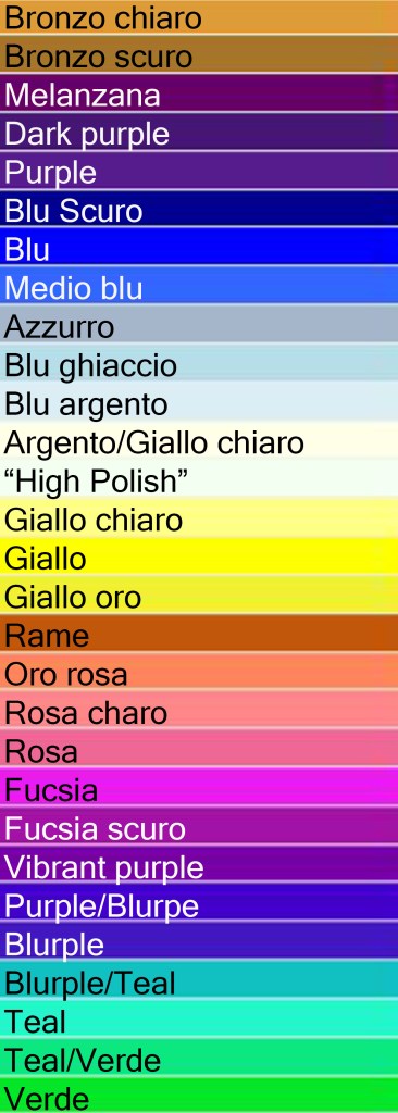 Spettro dei colori ottenibile tramite anodizzazione